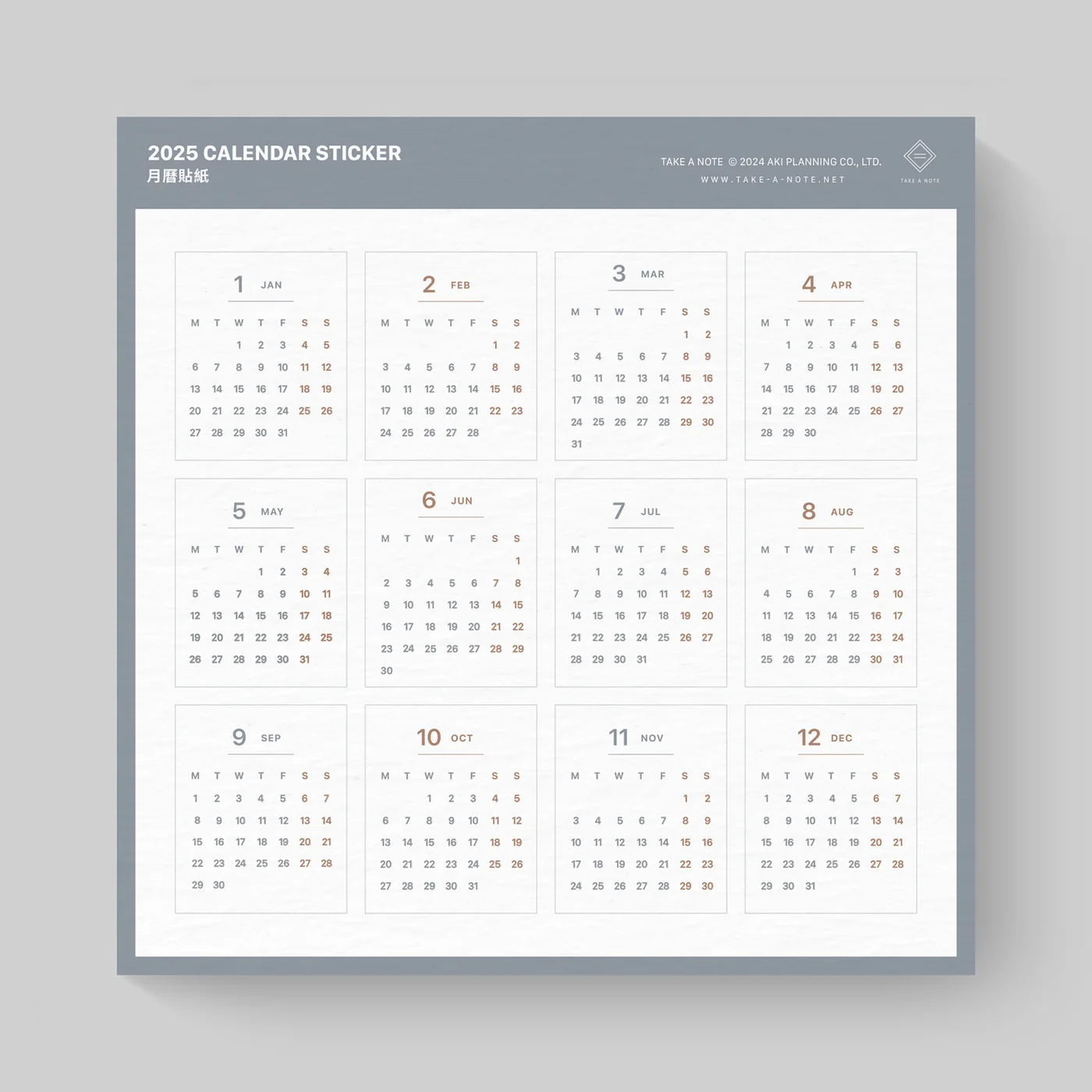 ..... TAKE A NOTE ..... 2025 Calendar Sticker (2 sheets) .....