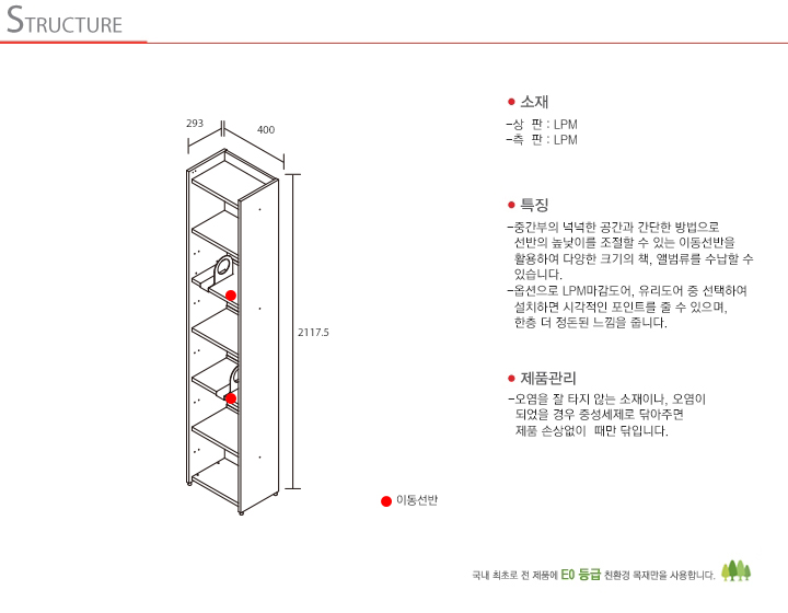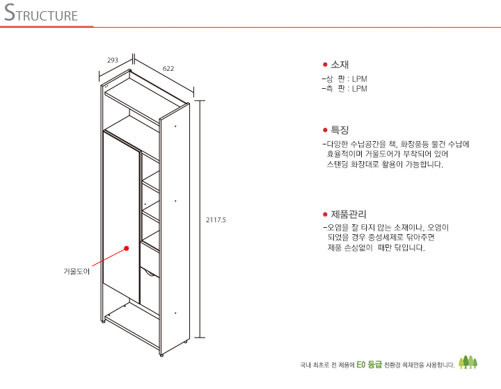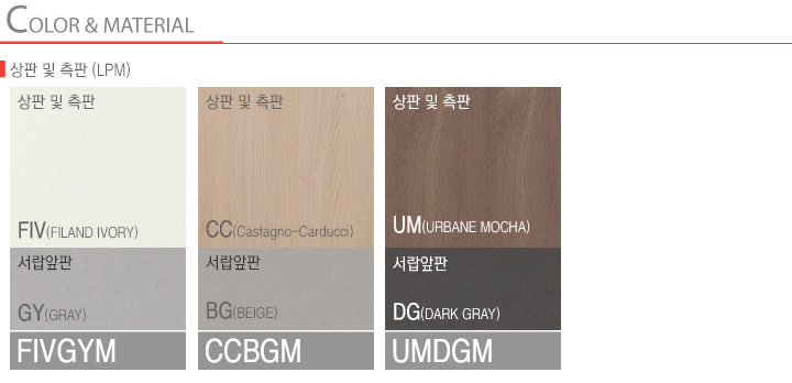 | 측판 | 18t PB 양면 LPM + 1.0t ABS 엣지 접착 마감 |