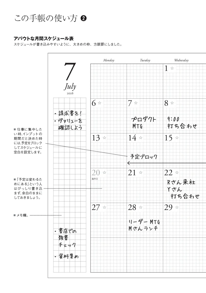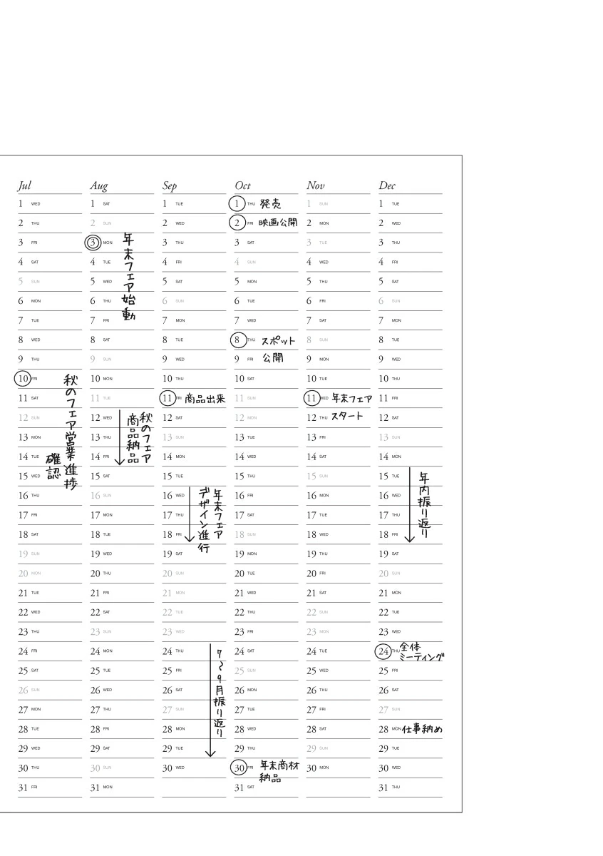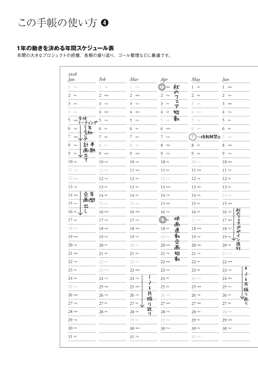編集者がほしい手帳を追求した「ディスカヴァーダイアリー」。1日1ページの自由度の高さが魅力です。昨日は議事録、今日は日記、週末は本や映画の感想記録など、使い方はあなた次第。